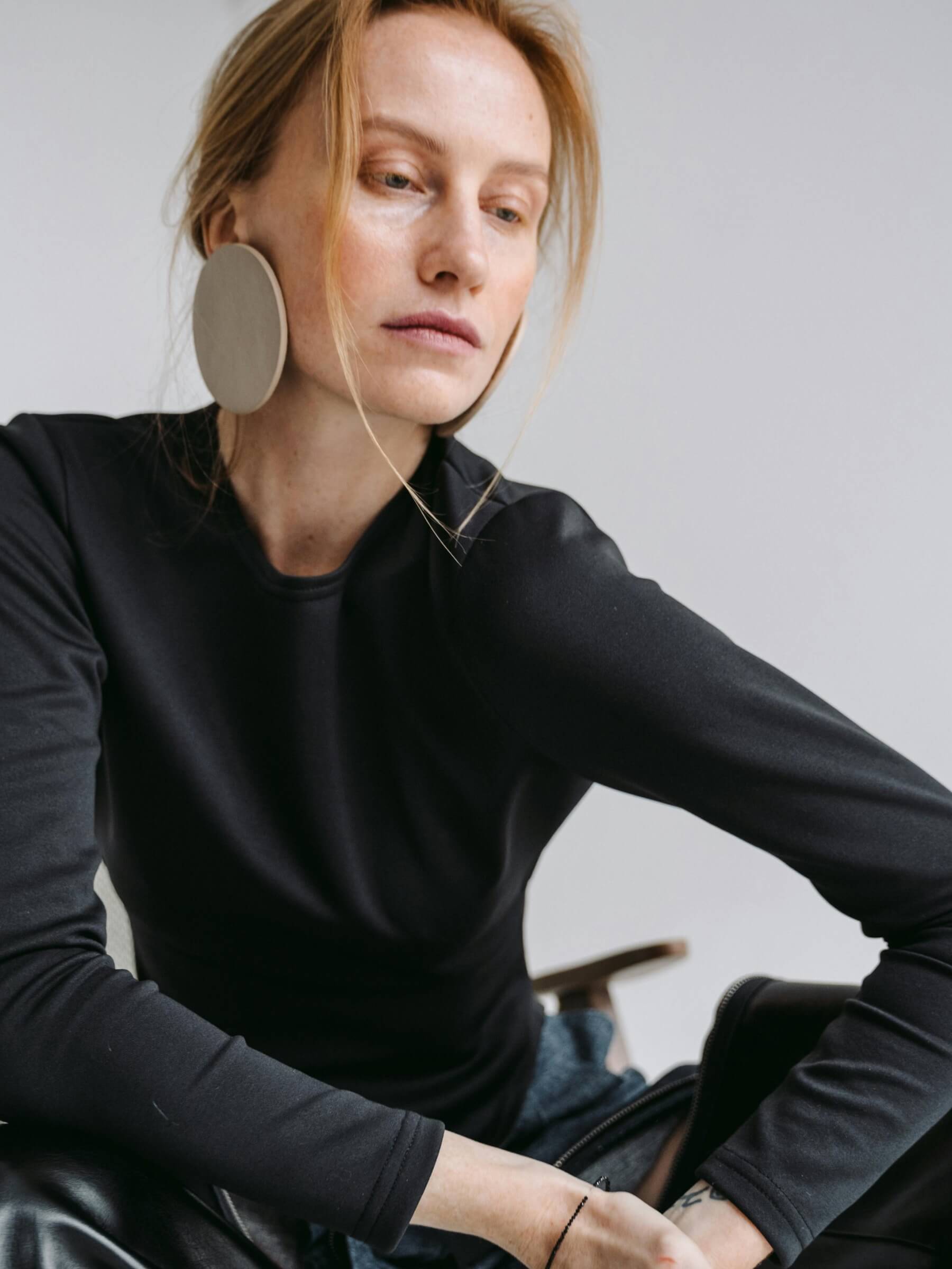 Textured leather circle earrings