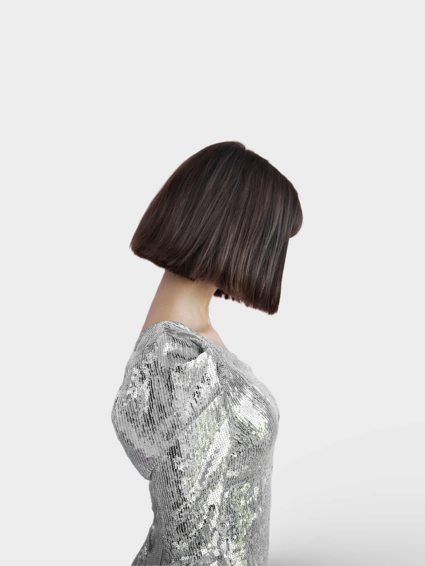 Mini dress featuring a dazzling arrangement of sparkling sequins.