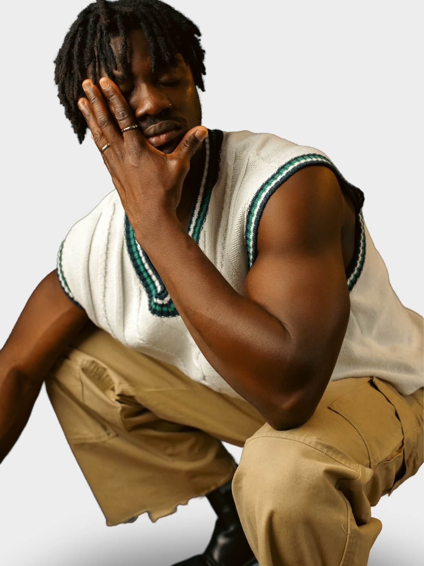 Relaxed fit knitted waistcoat in a wool yarn. Featuring a V-neck and ribbed trims.